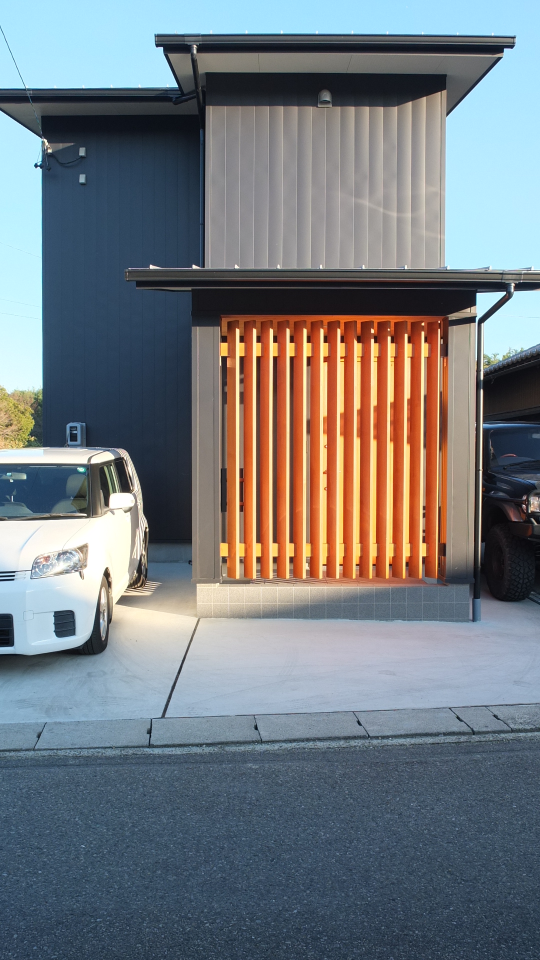今年の夏に竣工お引渡ししたm様邸。外構工事が行われていたため、しばらくできなかった外観の撮影をさせていただきました。 白っぽいコンクリート、黒いガルバリウム鋼板、明るい茶色の格子と玄関扉のコントラストが快晴の空に映え […]