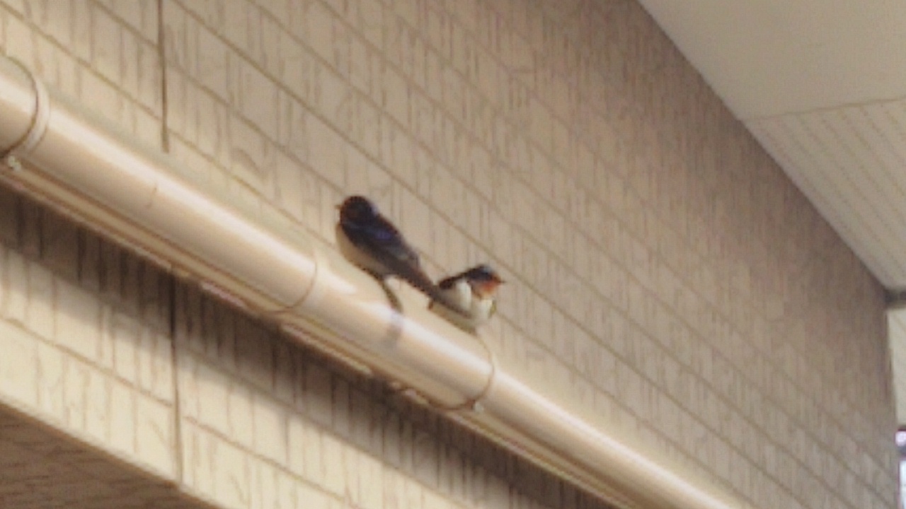 今年も江南営業所につばめがやってきました。春が来た、という感覚になります。 1年の間に少し崩れた巣をせっせと補修しています。 事務所玄関もさっそく養生シートを貼っていきます。