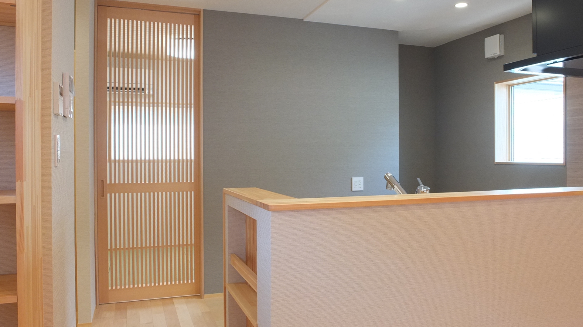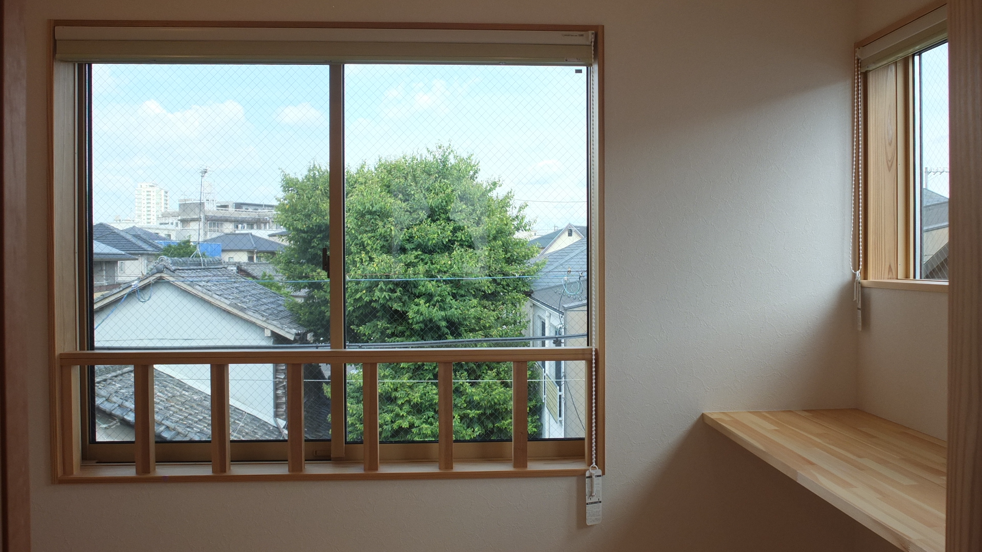 しかし、この木質空間を何とか実現したいとのyoyo様のご希望もあり、国土交通省告示によるサッシの開口部制限を行う事で『準延焼防止建築物』として申請、各箇所で自由に木質インテリアを施す事ができました。