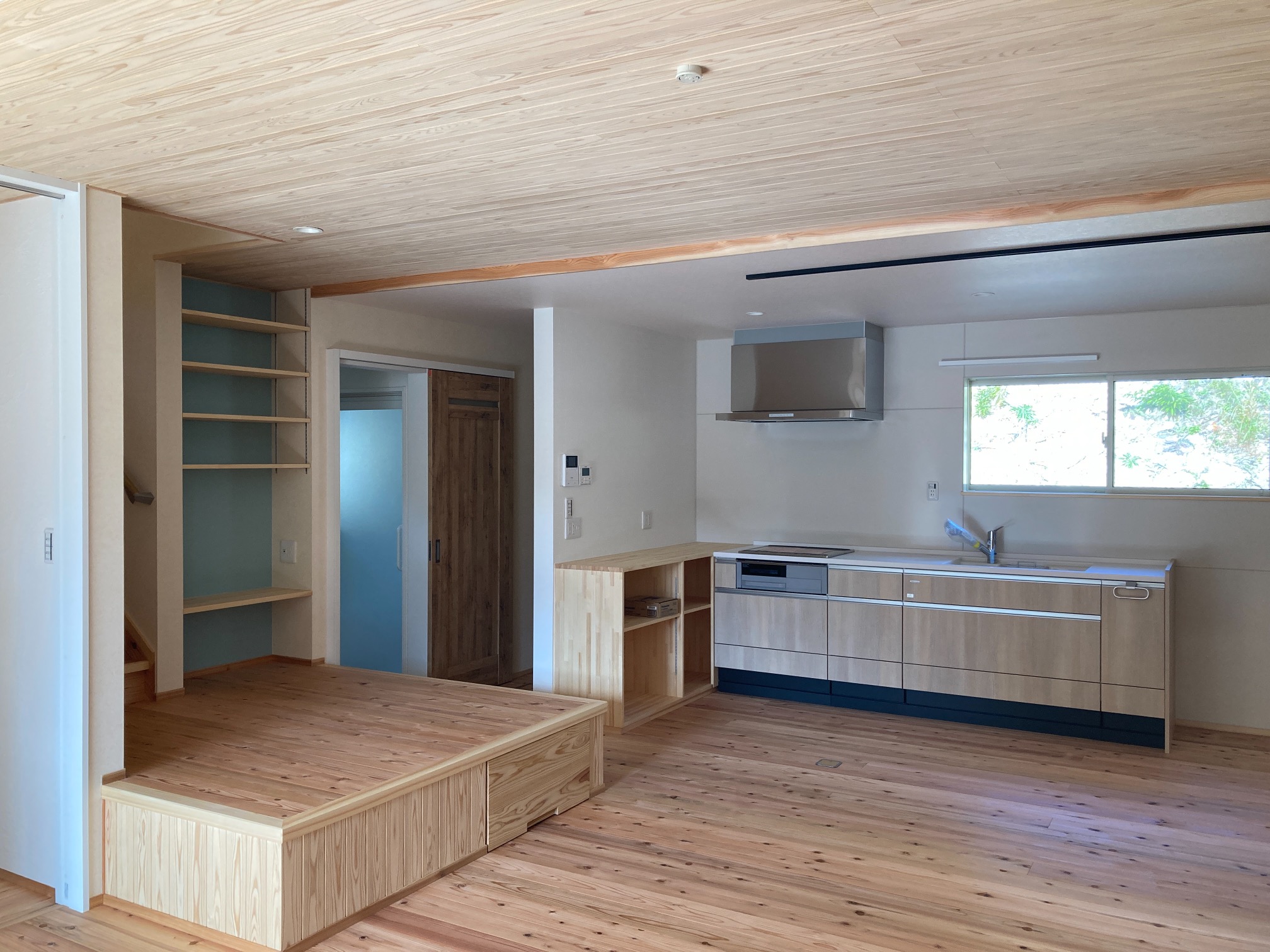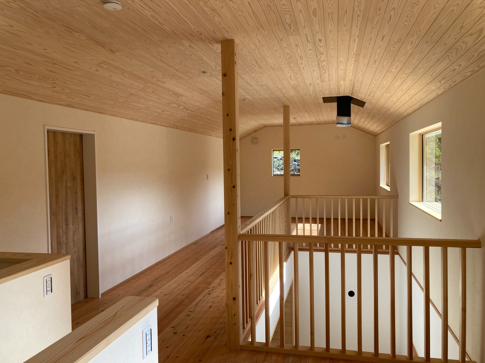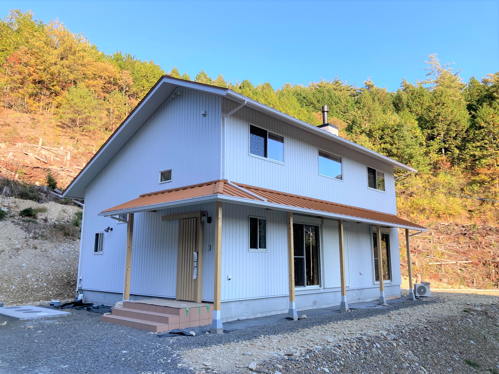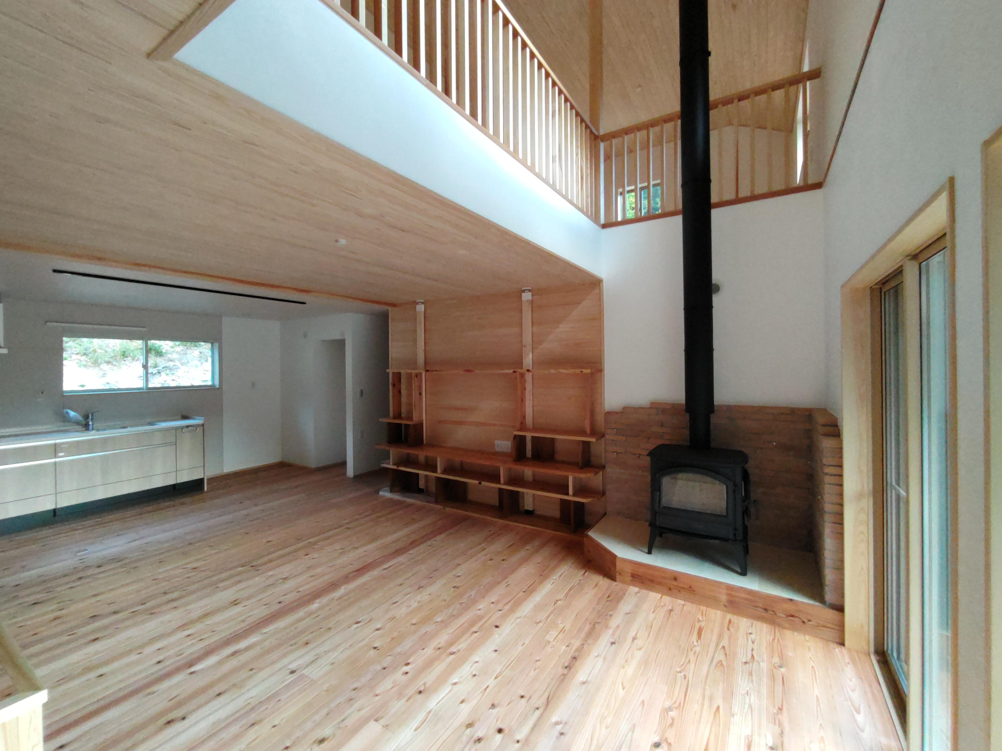 【延床面積】112.61㎡(34.06坪)/【工法】木造軸組工法/【断熱】床下:押出法ポリスチレンフォーム 外壁:高性能グラスウール 屋根・天井:高性能グラスウール/【換気】第1種換気/【屋根・外壁】屋根:ガルバリウム鋼鈑葺き 外壁:ガルバリウム鋼鈑【開口部】複合サッシ【内装】床:杉材 壁:漆喰、エコクロス 天井:エコクロス、杉材/【C値】1.0
