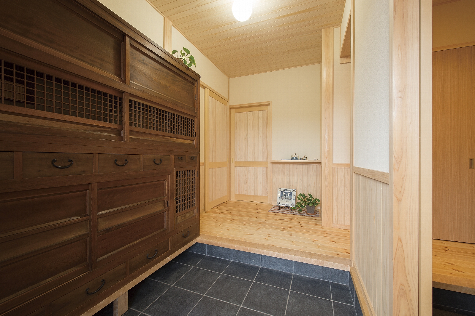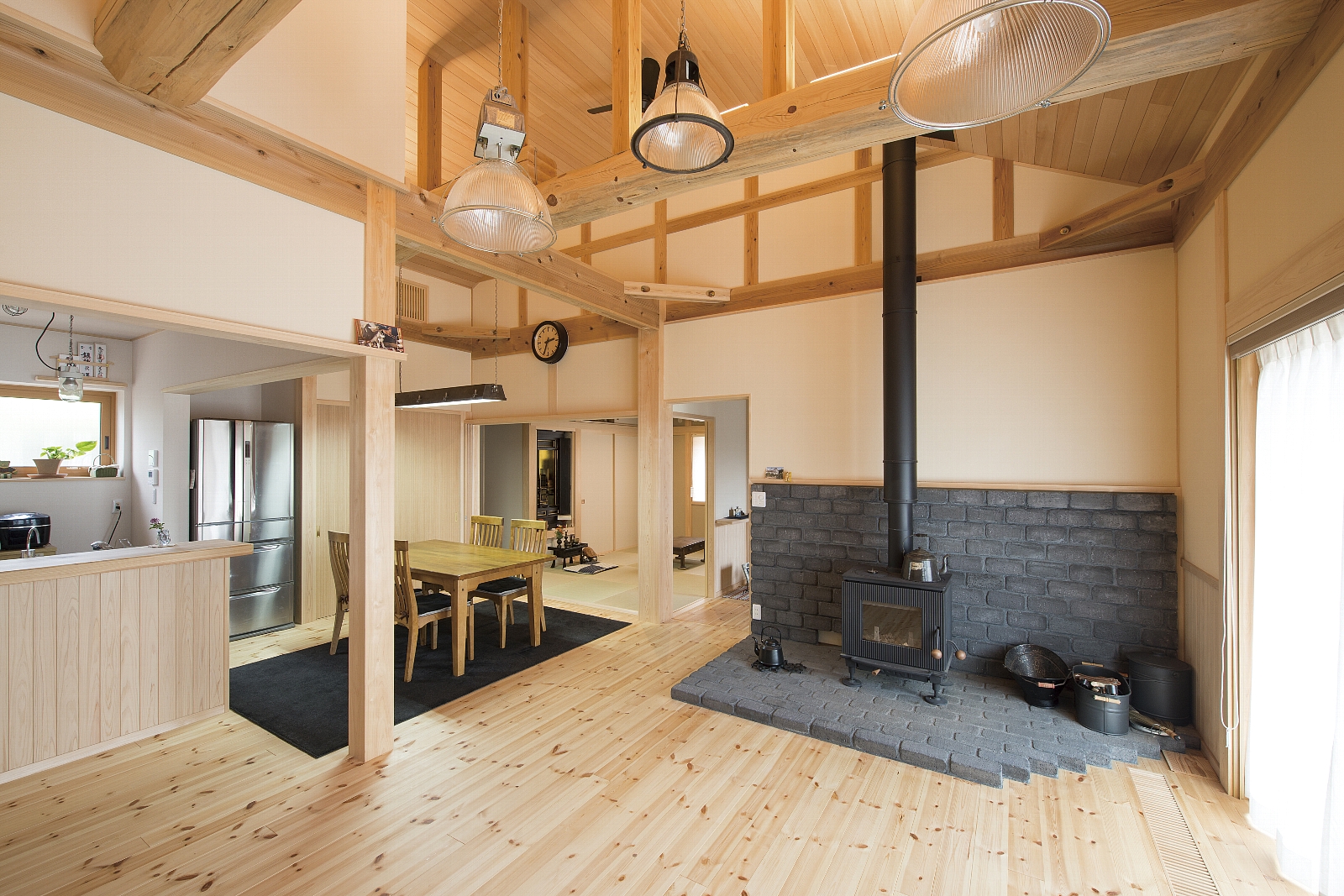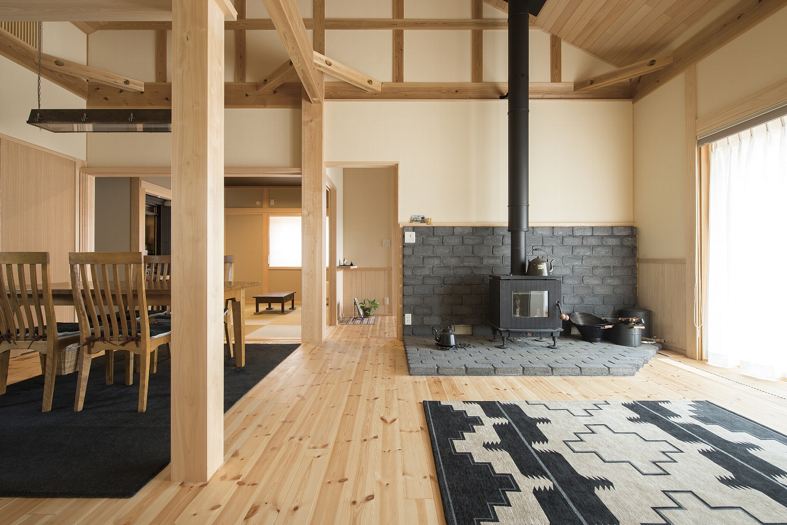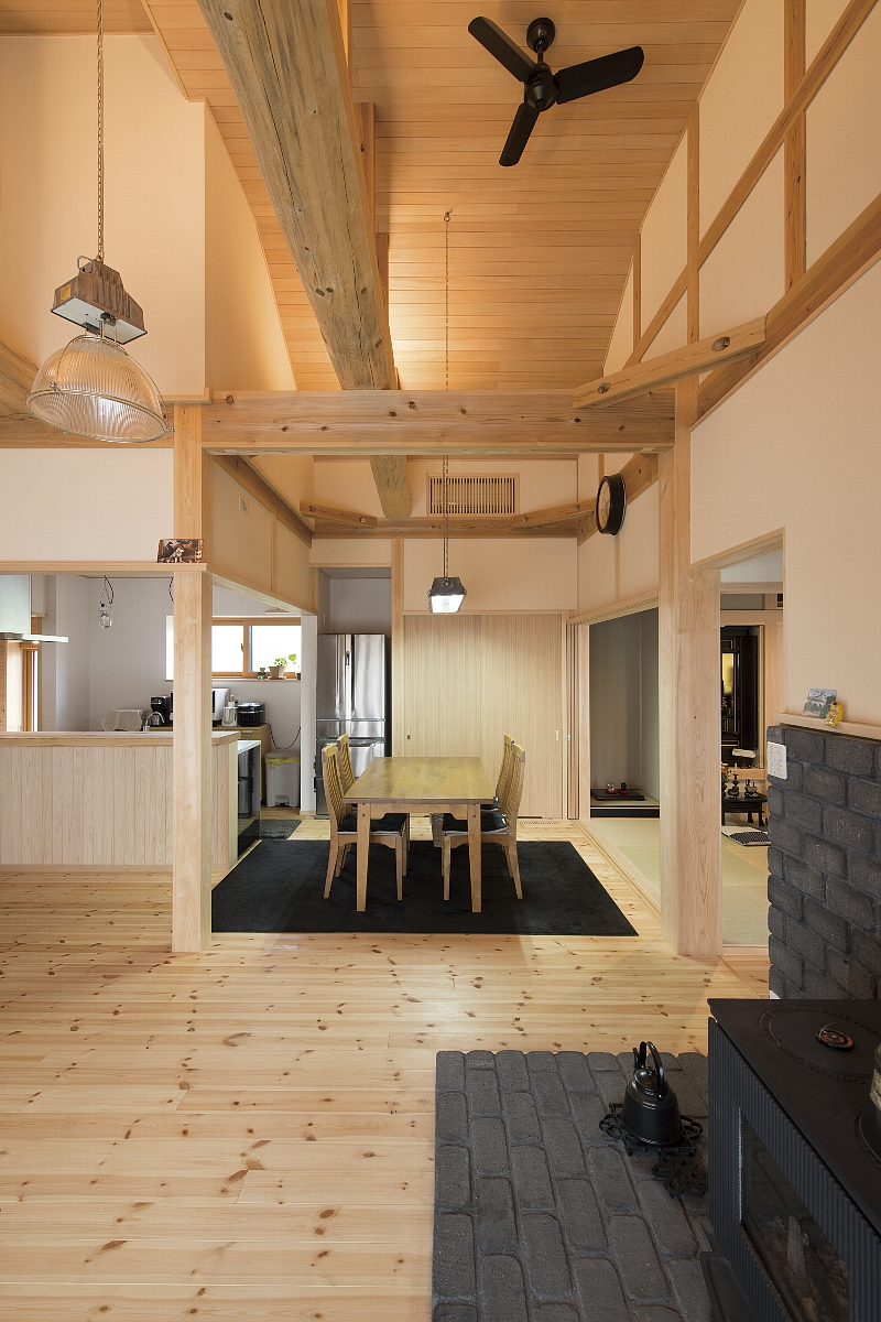 [換気]第1種機械換気/[屋根・外壁]屋根:平板瓦葺き 外壁:そとん壁/[内装]床:パイン材 内壁:珪藻土 天井:鉄杉羽目板/[UA値]0.30[ηA値]1.2[C値]0.3