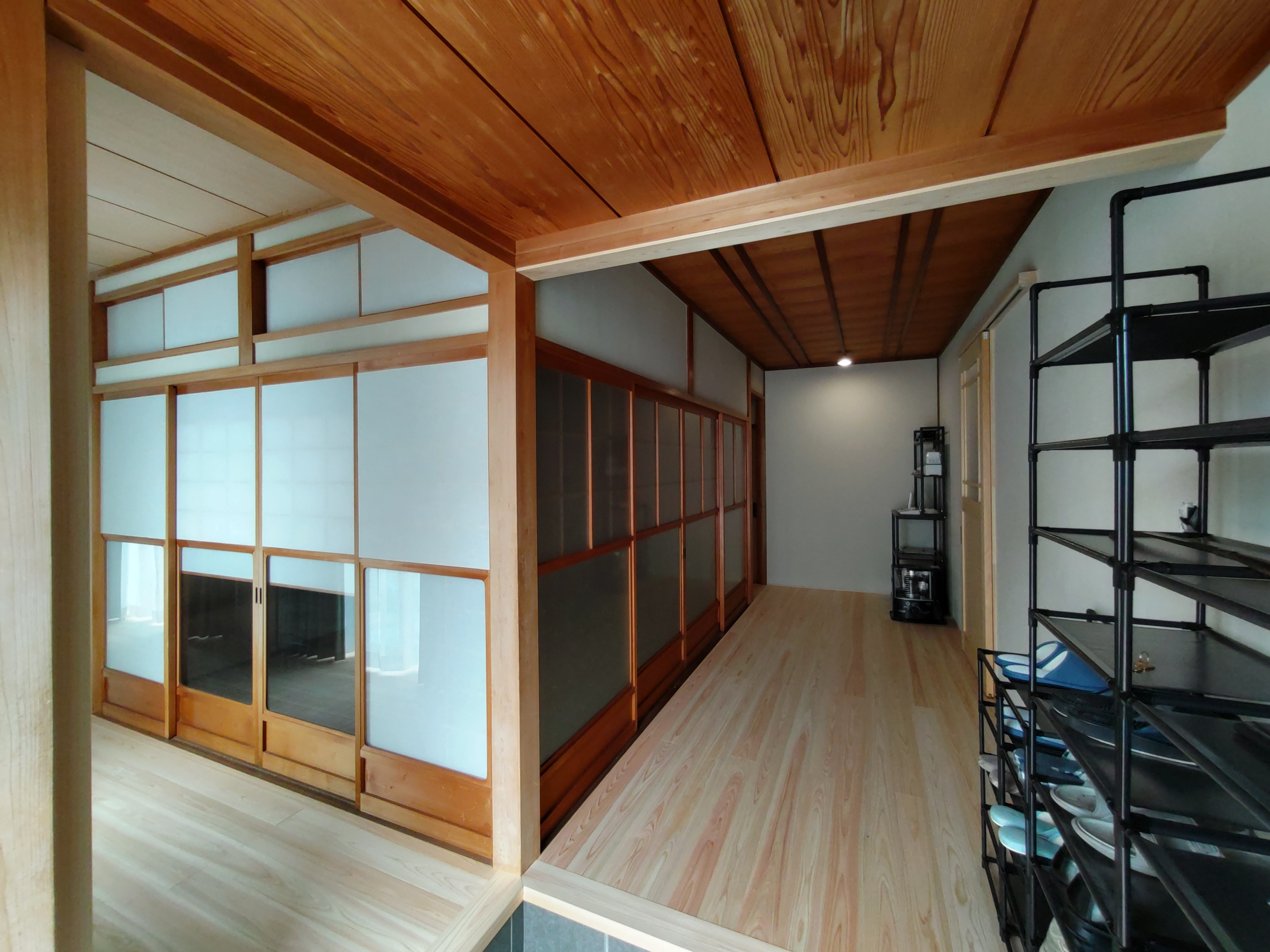 大正から昭和初期にかけて主屋、離れと建築されたこの建物、数々の地震や台風などを経ているものの当時の建主である先代のこだわりの賜物か、がっしりとした和小屋の軸組によって、古い民家にありがちな柱や鴨居の歪みなどがほとんどなく、現代までしっかりと守られてきていました。