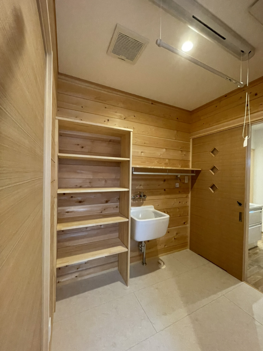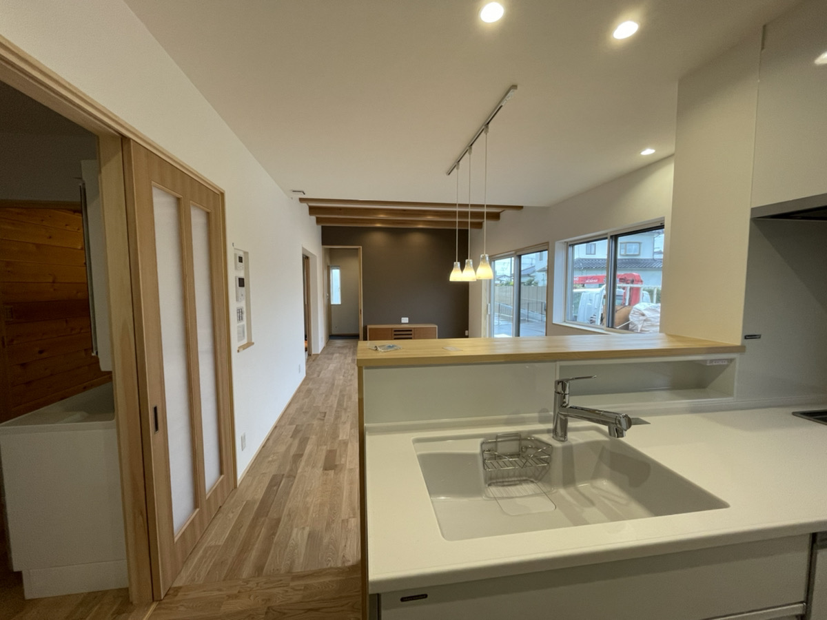 [換気]第1種機械換気/[屋根・外壁]屋根:平板瓦葺き 外壁:ガルバリウム鋼板/[開口部]複合サッシ/[内装]床:ナラ、パイン材 内壁:エコクロス、 天井:エコクロス、杉羽目板/[UA値]0.47[ηA値]1.5[C値] 長期優良住宅 [耐震等級]3/[耐風等級]2