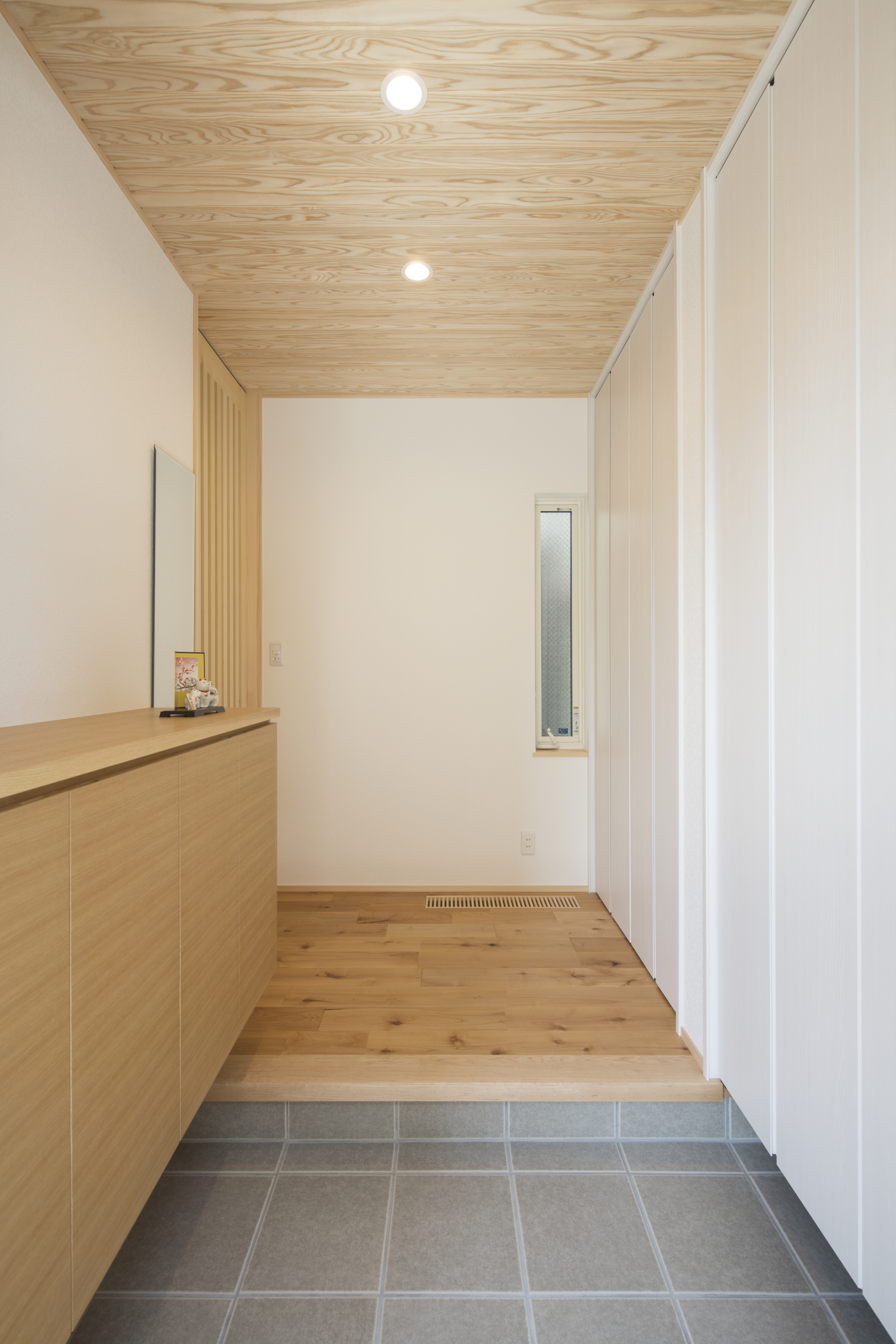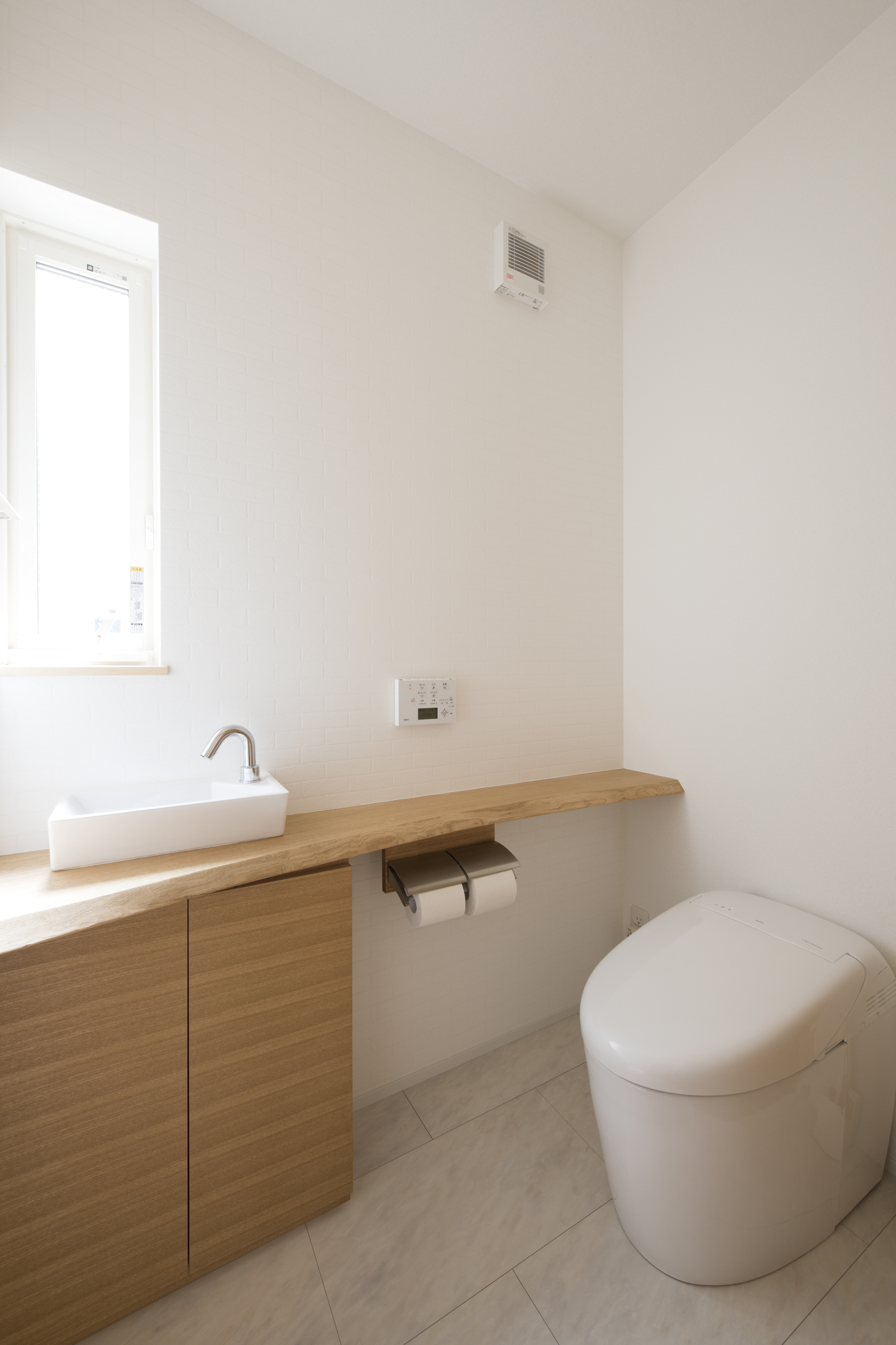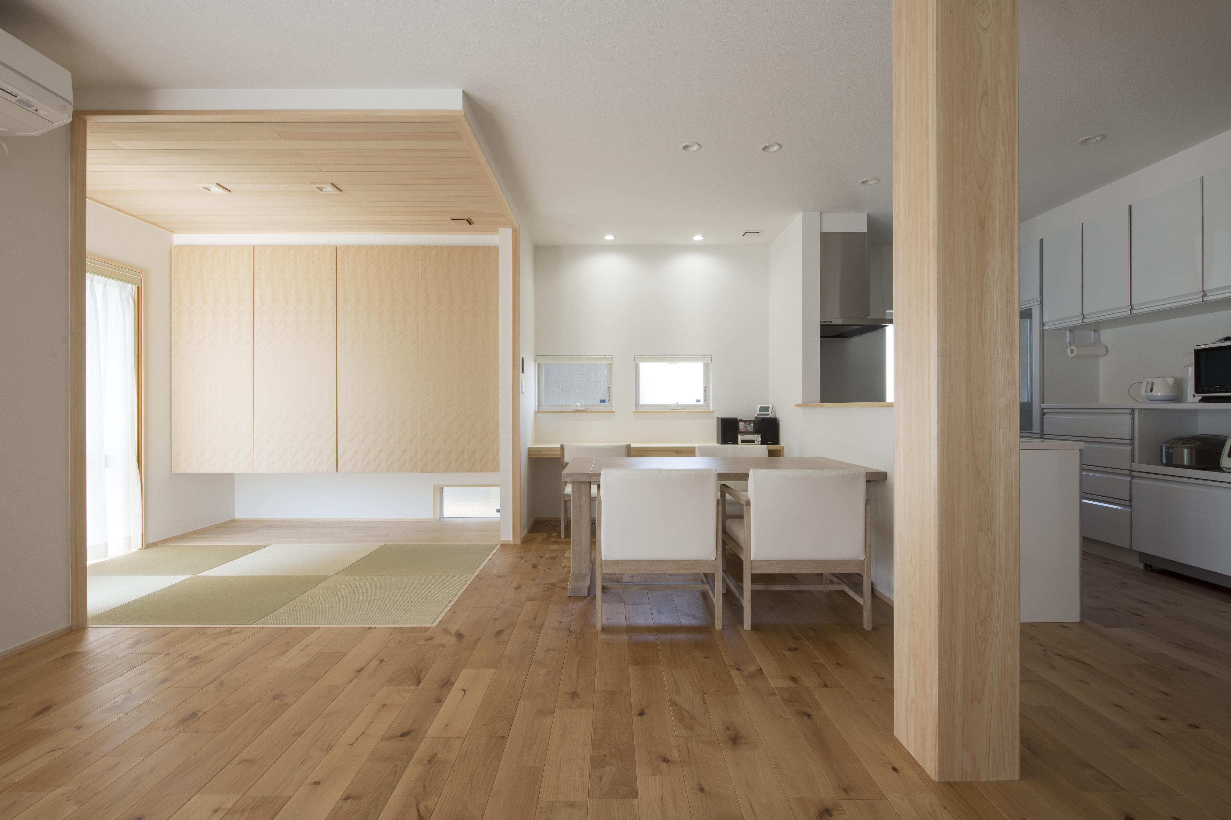[換気]第1種機械換気/[屋根・外壁]屋根:平板瓦葺き 外壁:ガルバリウム鋼板一部タイル貼り/[開口部]アルミ樹脂複合サッシ/[内装]床:アルダー材 内壁:エコクロス、漆喰塗 天井:エコクロス/[UA値]0.45[ηA値]1.3[C値]0.5