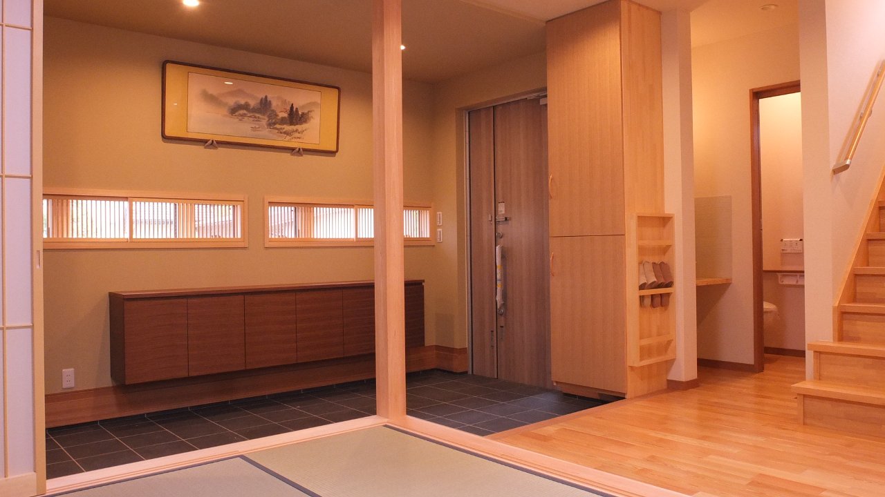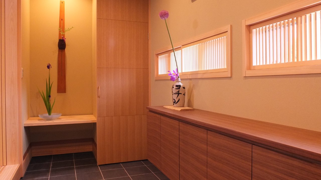 この住宅は玄関すぐに客間を兼ねた和室を配置し、生け花の教室としても活用。また、それぞれの作品を飾っておける空間を各所に散りばめた構成となりました。