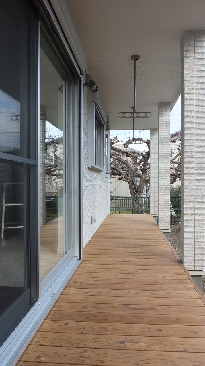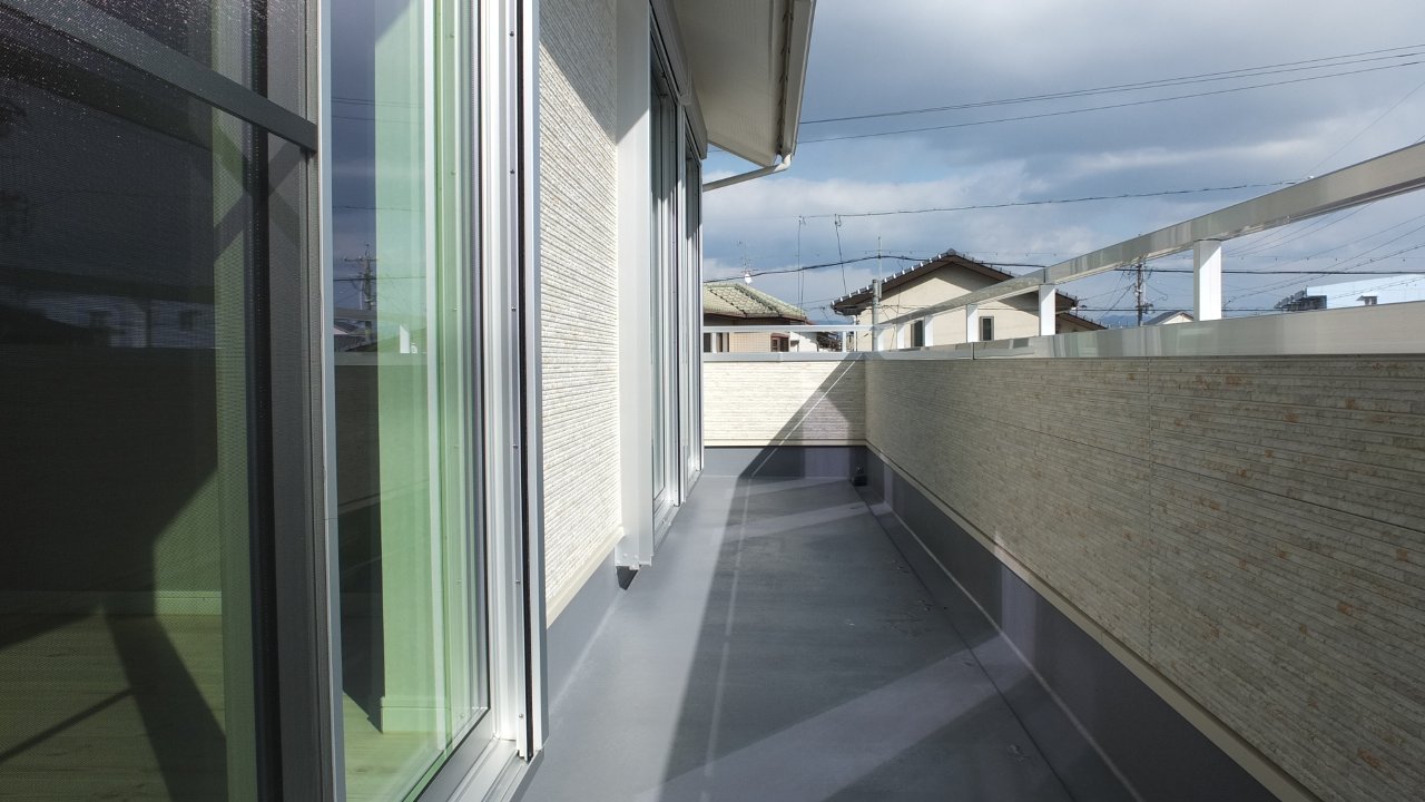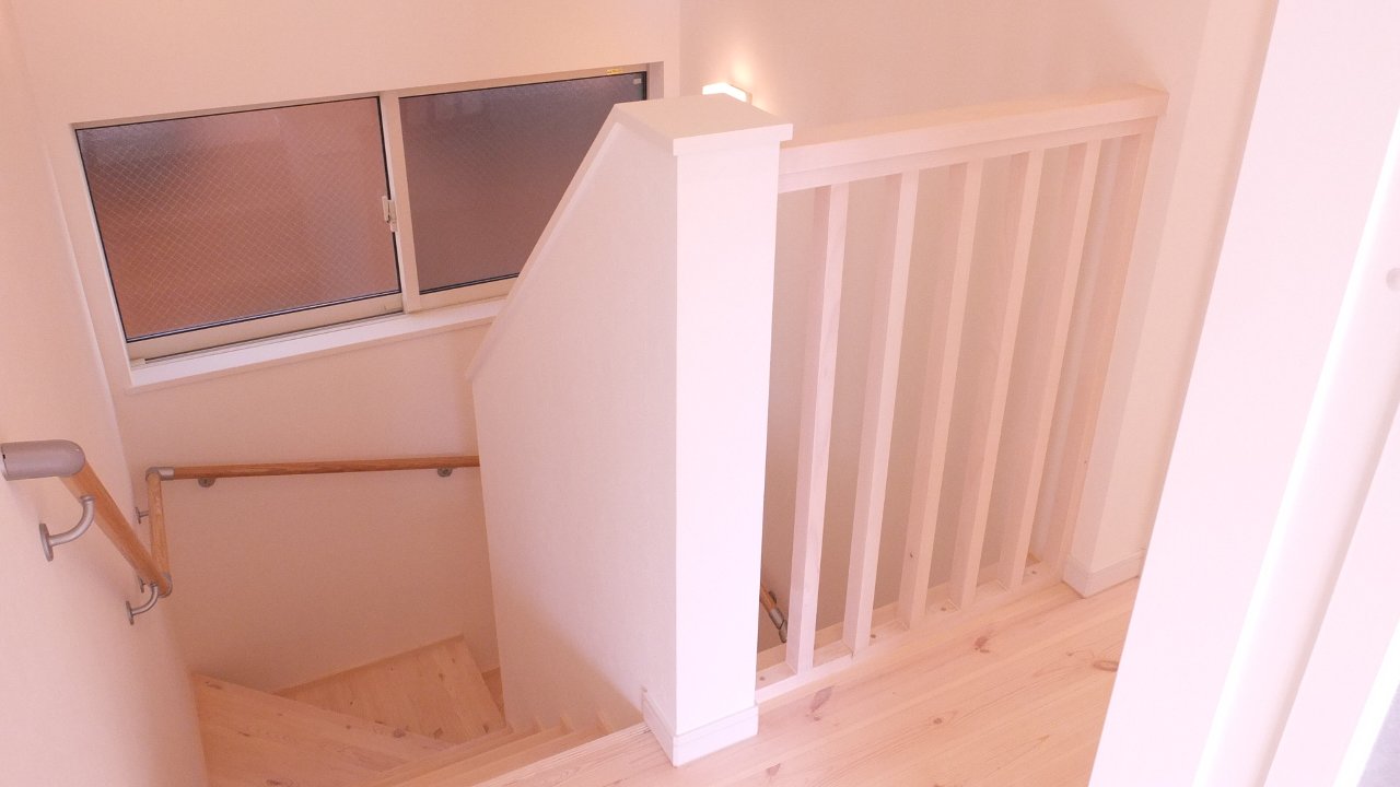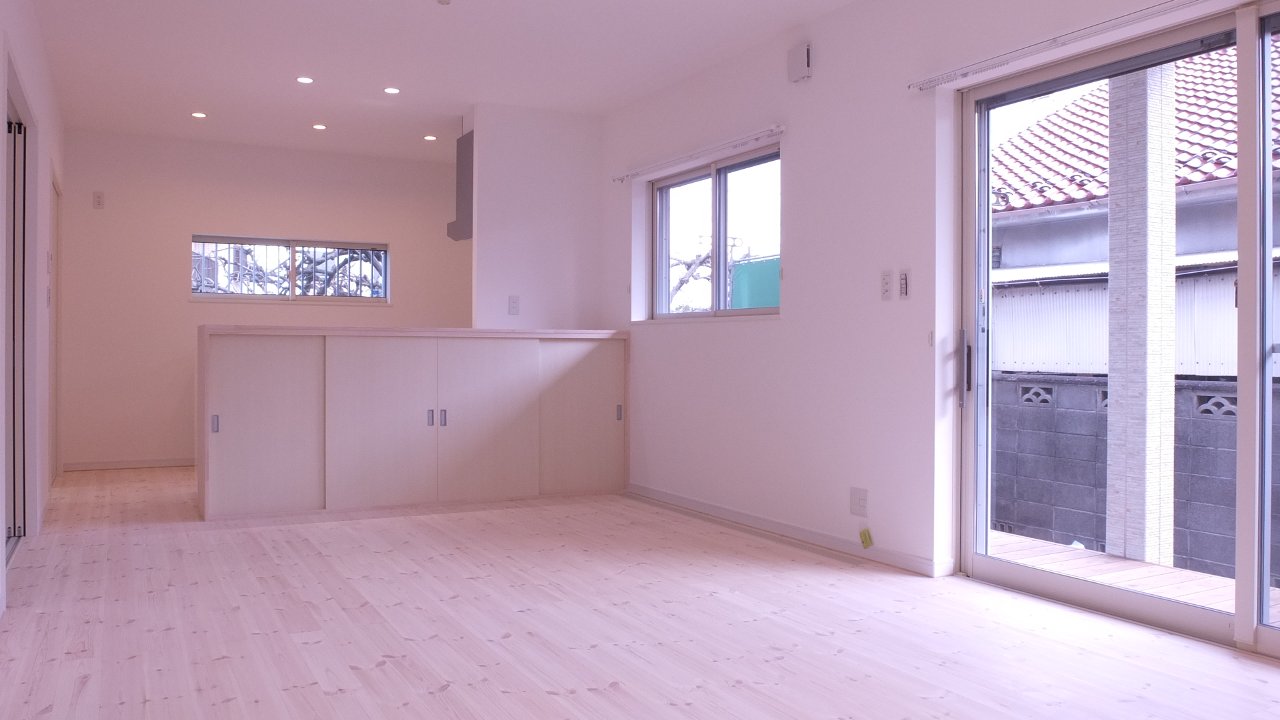 建築計画を進めていくにあたり、eh様は間取り、内装、構造など、できるだけシンプルなモノをご希望されました。特に内装は天井、壁、床、建具、設備に至るまで極力ホワイトで統一。まさに「白亜の」住宅となっています。ここに配する様々な家具、調度品、そしてh様ご家族の「生活」によって、この住宅がどのように色付けされていくかが楽しみです。