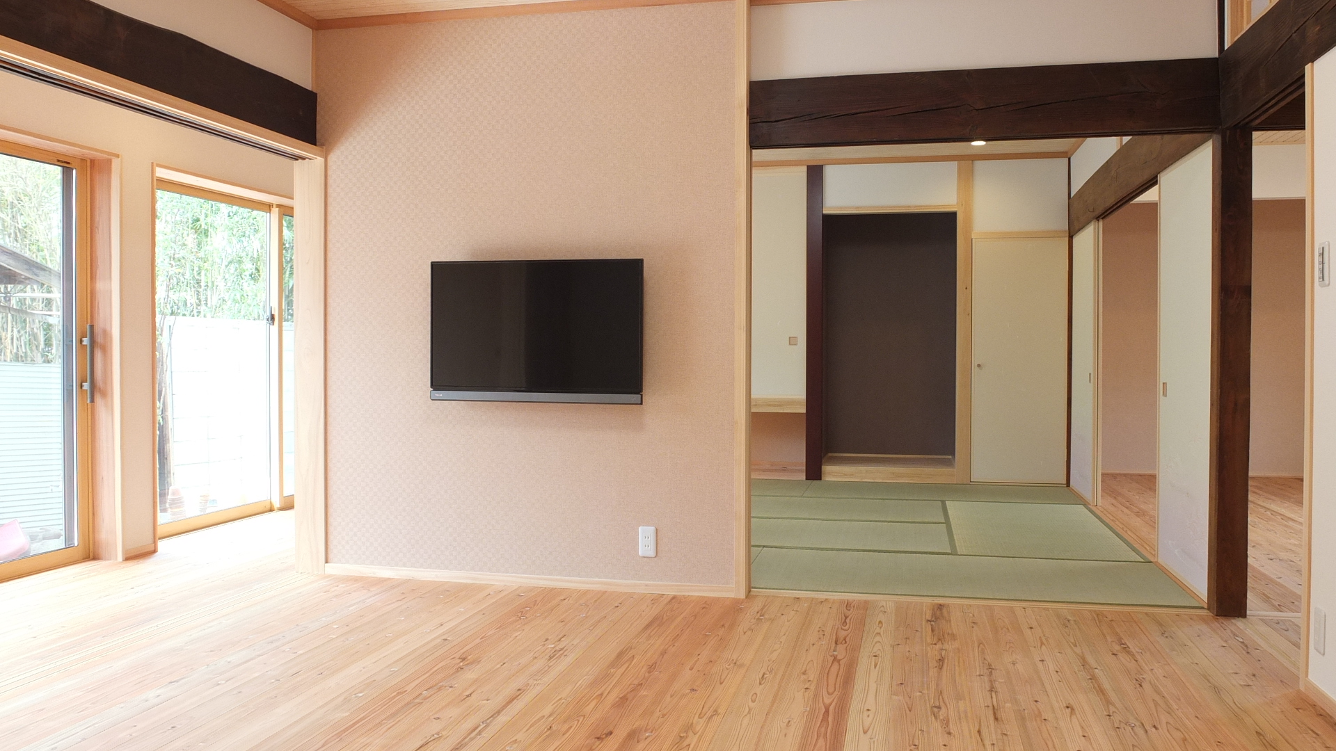 内部は典型的な古民家の田の字型の間取りでしたが、現在の生活に合わせて各居室に性格付けを行い、それに付随する機能を取り付けました。