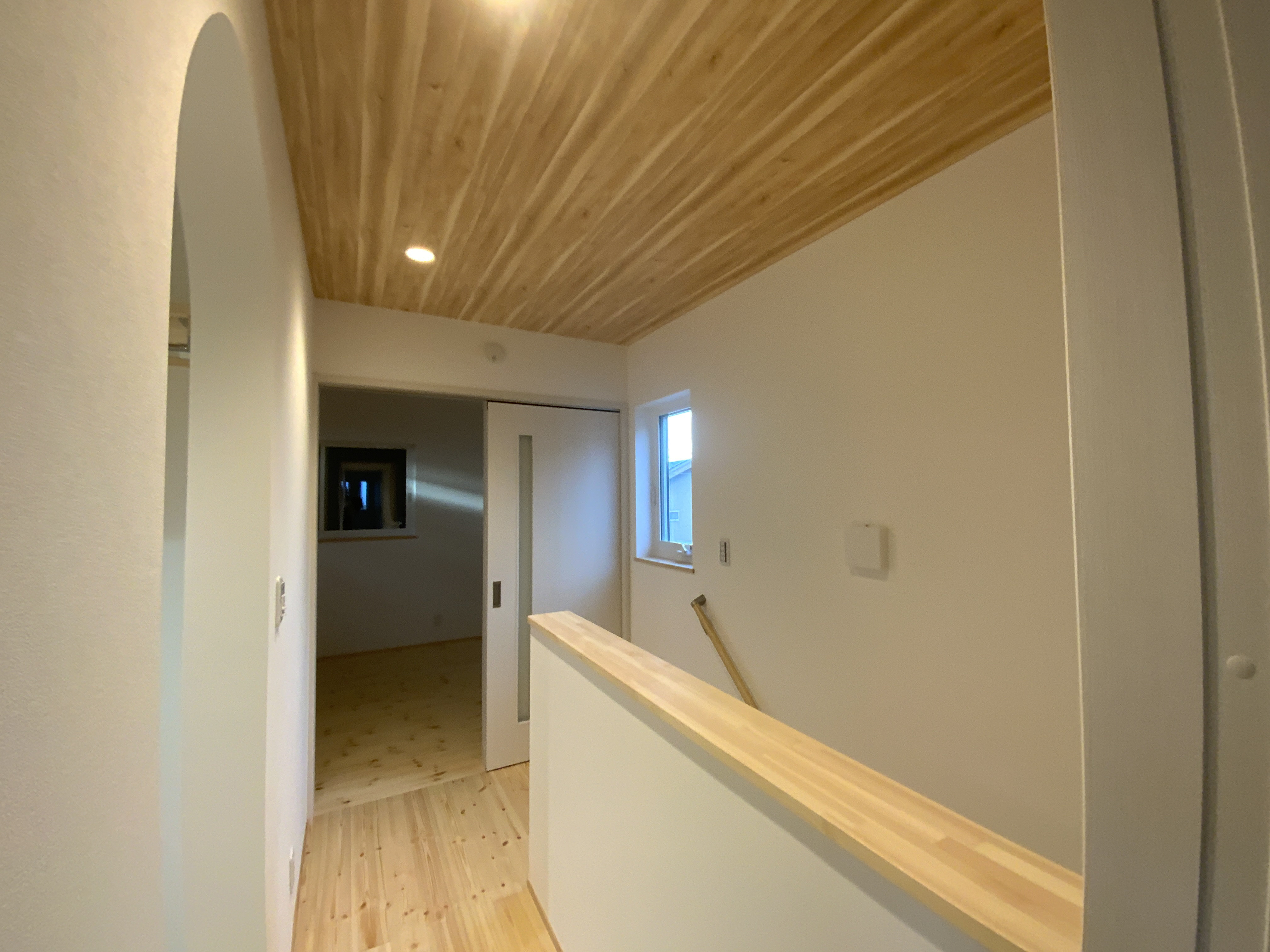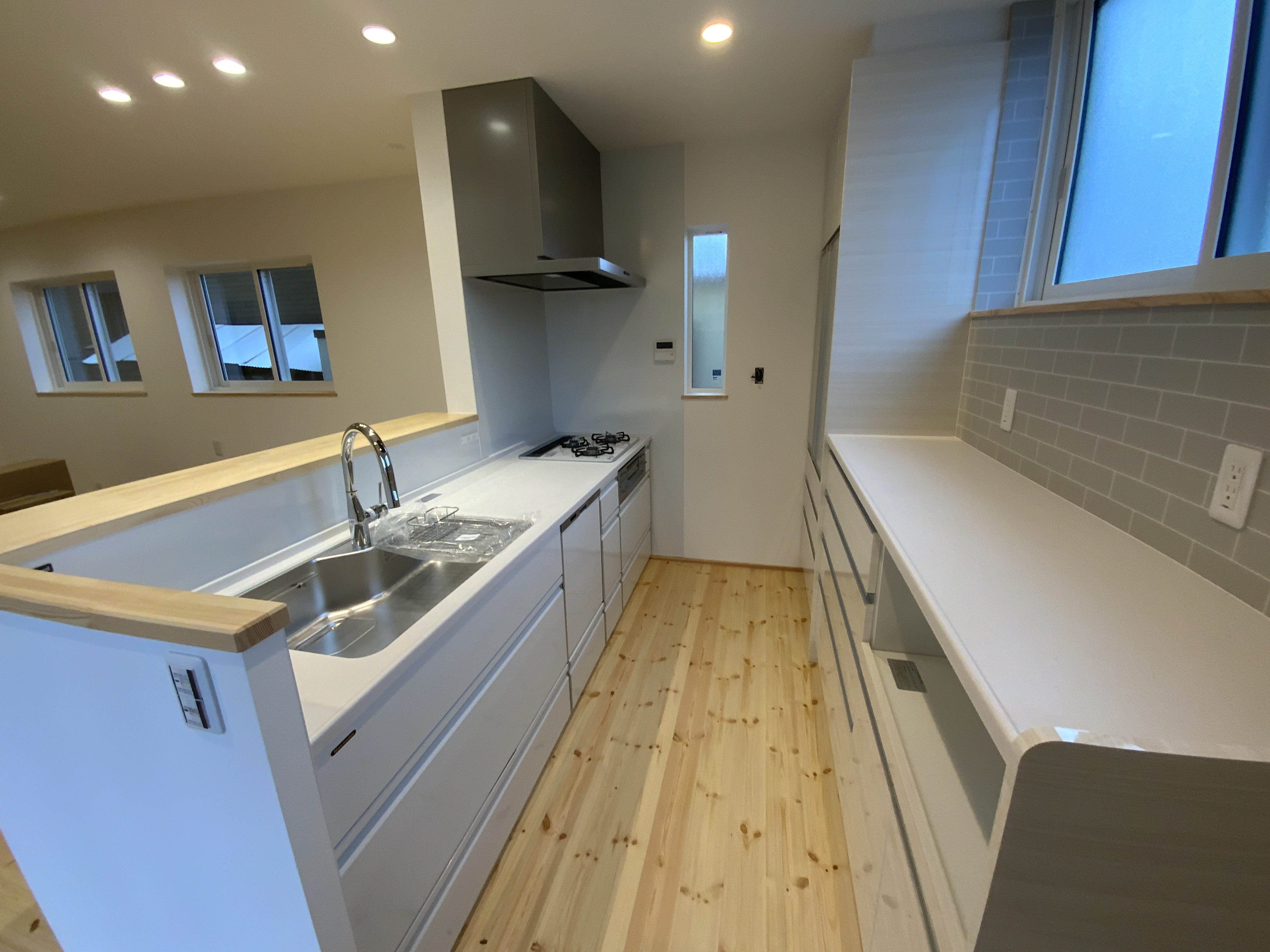 【延床面積】77.85㎡(23.54坪)/【工法】木造軸組工法/【断熱】基礎内:押出法ポリスチレンフォーム 外壁:高性能グラスウール 屋根・天井:高性能グラスウール/【換気】第1種換気/【屋根・外壁】屋根:ガルバリウム鋼鈑 外壁:ガルバリウム鋼鈑【開口部】樹脂サッシ【内装】床:突板合板フロア、パイン材 壁:エコクロス 天井:エコクロス、杉材/【UA値】0.43【ηA値】1.4【C値】0.6