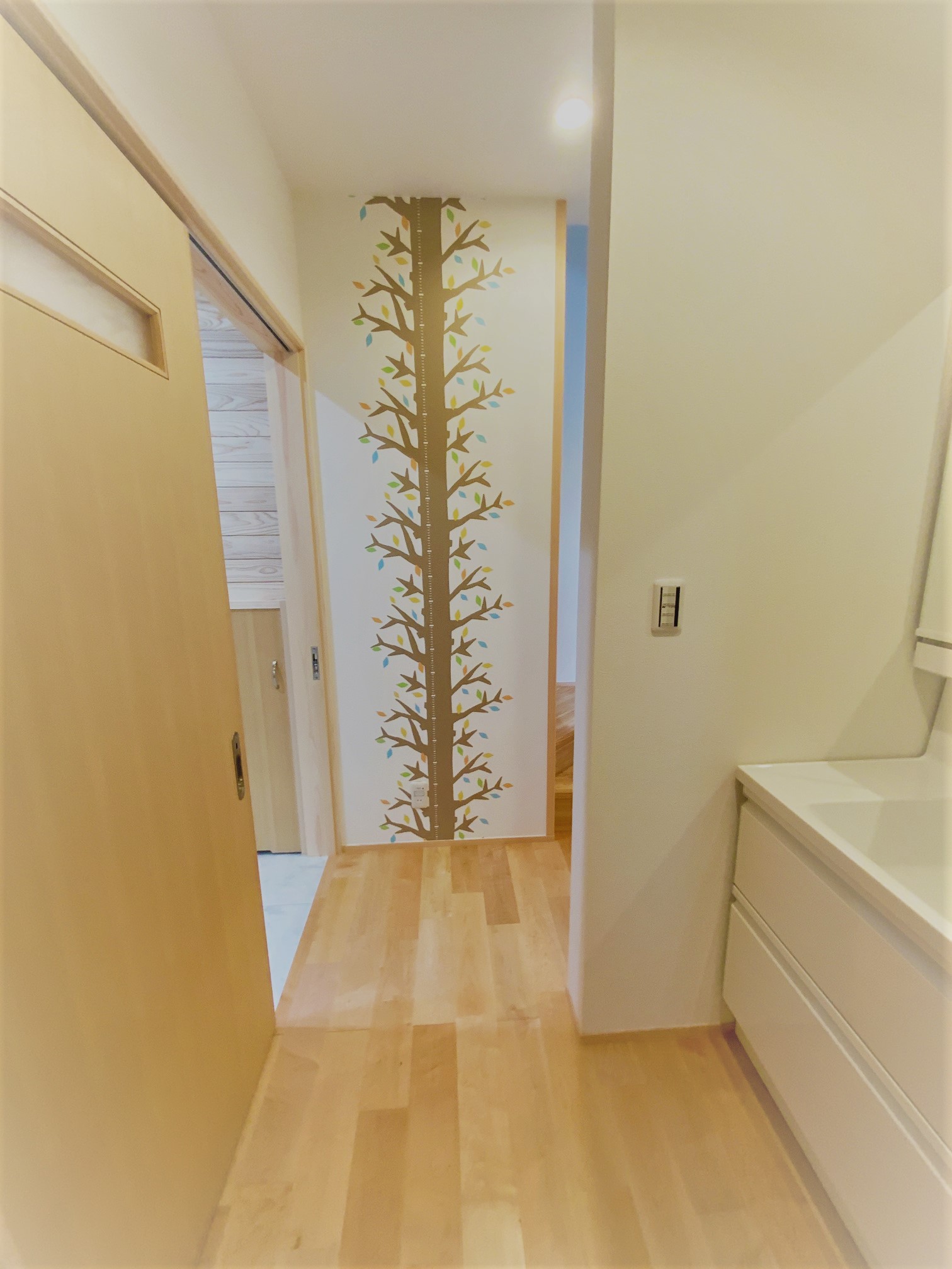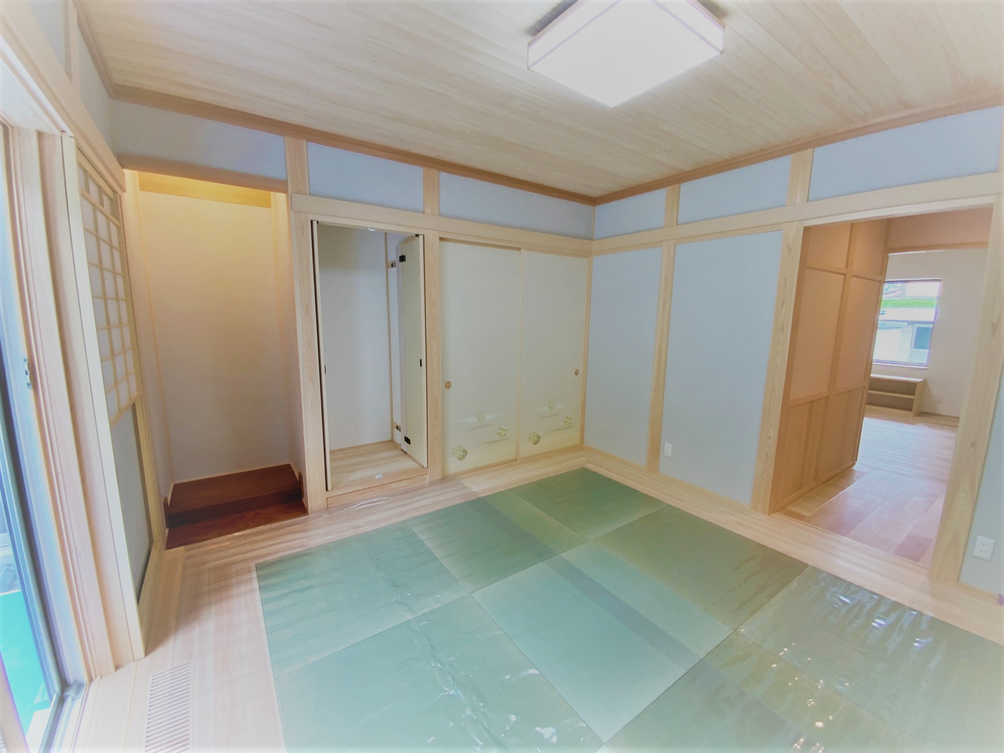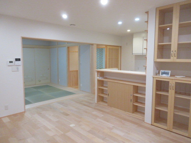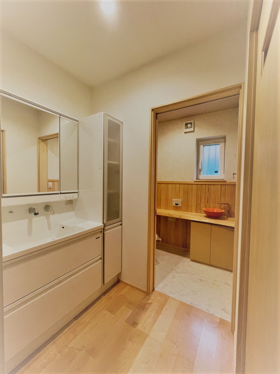 [内装]床:メープル材、杉材 内壁:珪藻土、エコクロス 天井:エコクロス、桧羽目板/[UA値]0.32[ηA値]1.2[C値]0.3 長期優良住宅 [耐震等級]3/[耐風等級]2